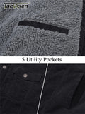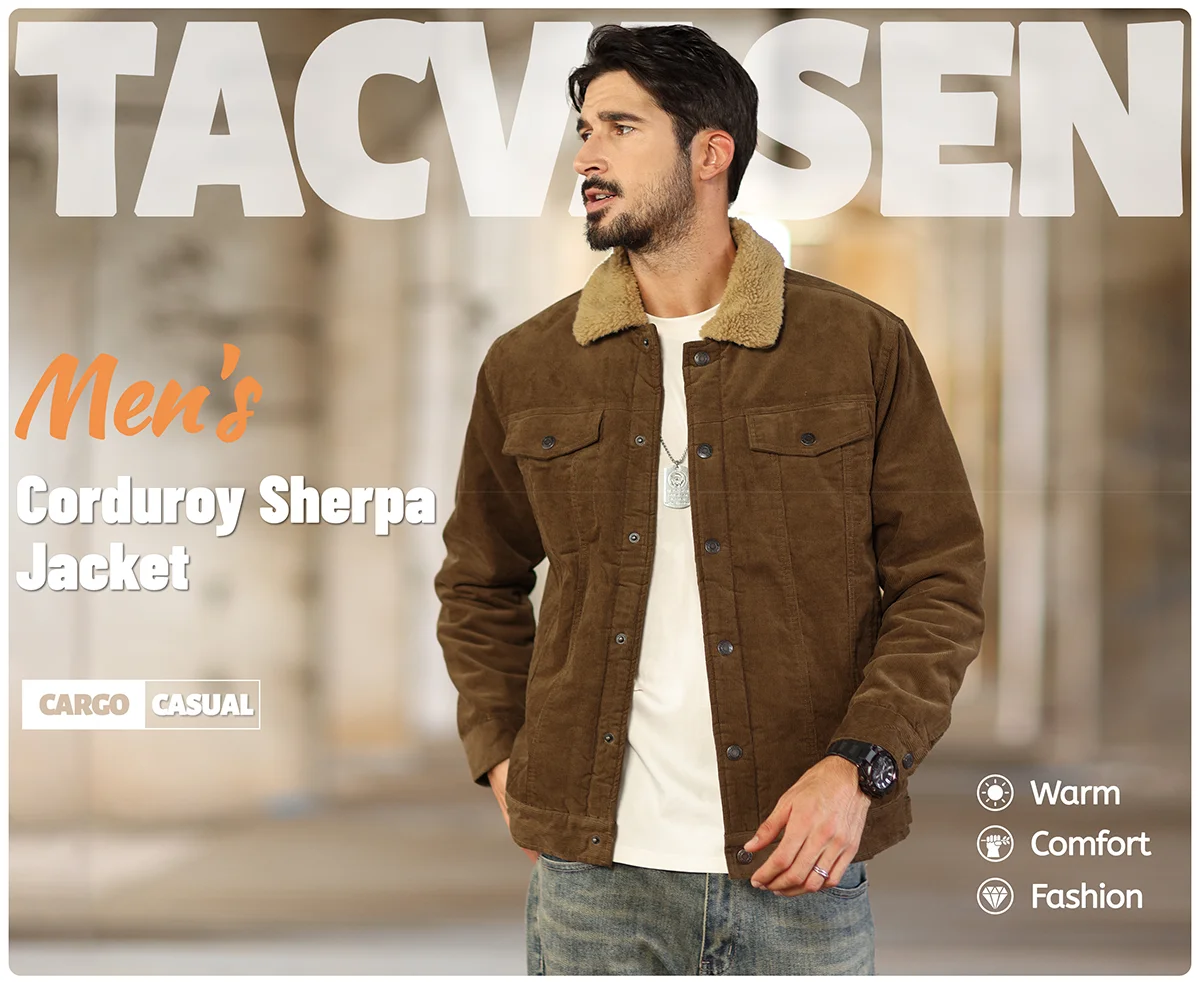 TACVASEN Thicken Fleece Lining Mens Corduroy Jacket Sherpa Lined Winter Coats Trucker Cargo Workwear Multi-Pocket Outwear